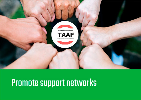 Promover redes de apoyo y acompañamiento entre comunidades y otras organizaciones que puedan brindar ayuda. A partir de un registro de los diversos conflictos generados por la afectación y/o despojo de los bienes comunes y violación a los derechos humanos de las comunidades, pueblos indígenas y grupos de trabajadores por políticas y proyectos de turismo.